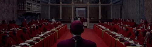 In Edward Berger’s Oscar-nominated Conclave, cardinals from around the world convene to elect a new pope. They traverse courtyards swathed in identical vibrant red mozzettas. Seated in the Sistine Chapel, they form a wave of vermilion holiness, accented by the statement pectoral crosses around their necks. Lisy Christl’s costume design commands the eye, immersing us in Vatican politics where beneath uniformity a web of individual agendas are spun.